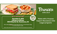 Dine at Panera Bread - 850 N. Mayfair Rd. - on Saturday, December 6th and help support Wauwatosa Little League Programs.