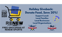 Join ReNew Sports and Fitness to give back to our community - from now until the end of December, donate 3 or more non-perishable food items to their food pantry and receive a 20% discount on your purchases. Clickherefor more info...