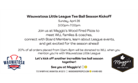 Join us at Maggio's Wood Fired Pizza in Tosa from 3pm-7pm on Sunday, April 26, to meet other WLL families and coaches, connect with Board Members, and learn about what to expect this season, including about League events.Click her...