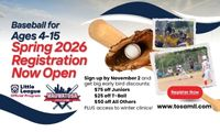 Registration is now open for Spring Baseball! Sign up by November 2nd for great early bird deals and access for affordable winter clinics. More information here.